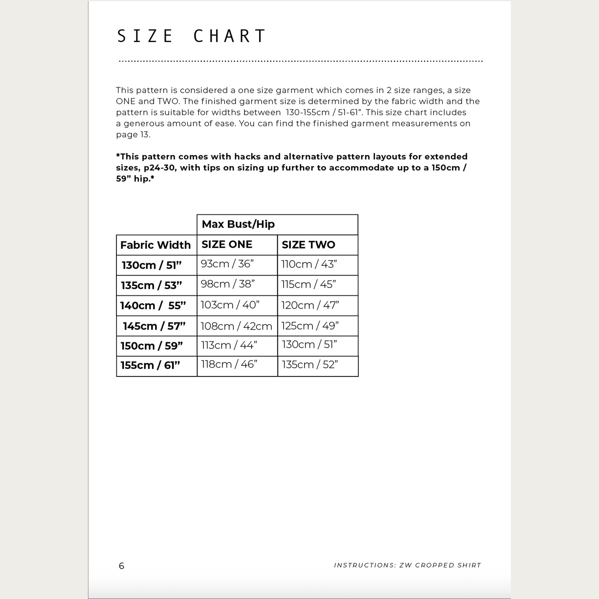 This is a 'one size' pattern which comes in two size ranges. The pattern includes instructions for all sizes - size ONE (EU 36 - 44) and size TWO  (EU 46 - 52). Swipe through the photos for measurement details.