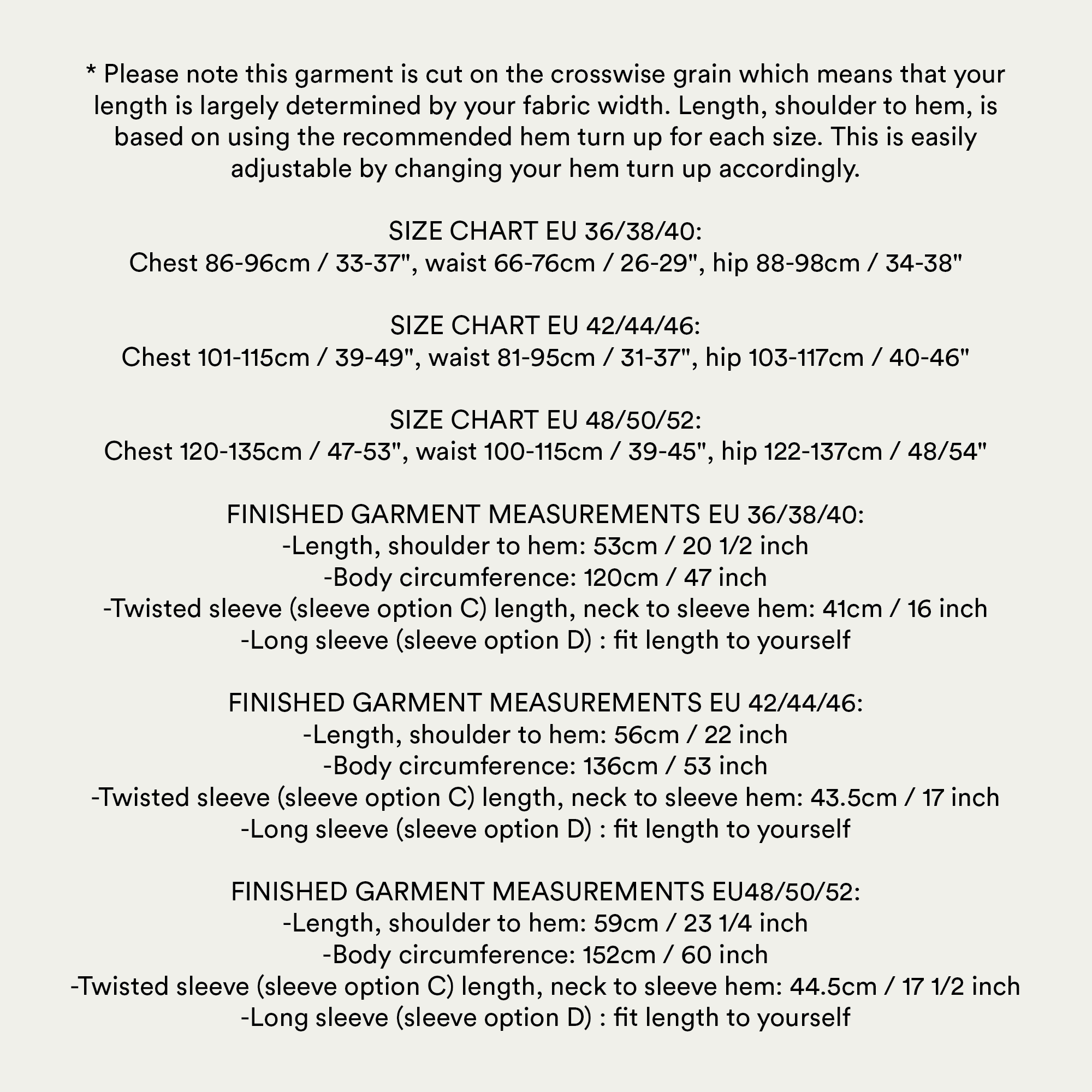 Comes with 3 size options included within the one pattern booklet: EU 36/38/40, EU 42/44/46 and EU 48/50/52. All sizes options are included in the one pattern. The ZW Soft Blouse is easy to grade up or down in sizing and each one can be modified easily to suit your needs.