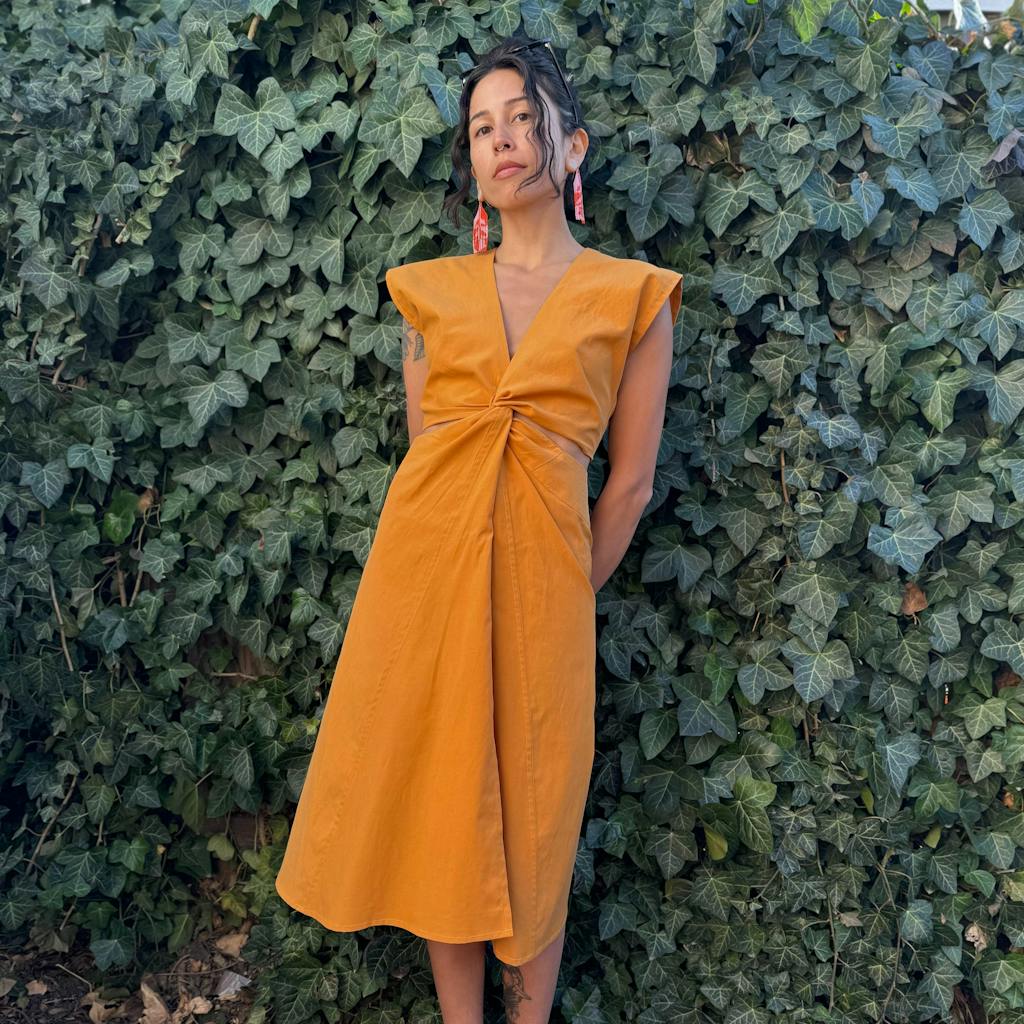 Inspired by a ready-to-wear dress, I set out to make my own version and used the Sycamore Road Patterns Paula Knot Top pattern as my base and worked from there to create this front twist dress.