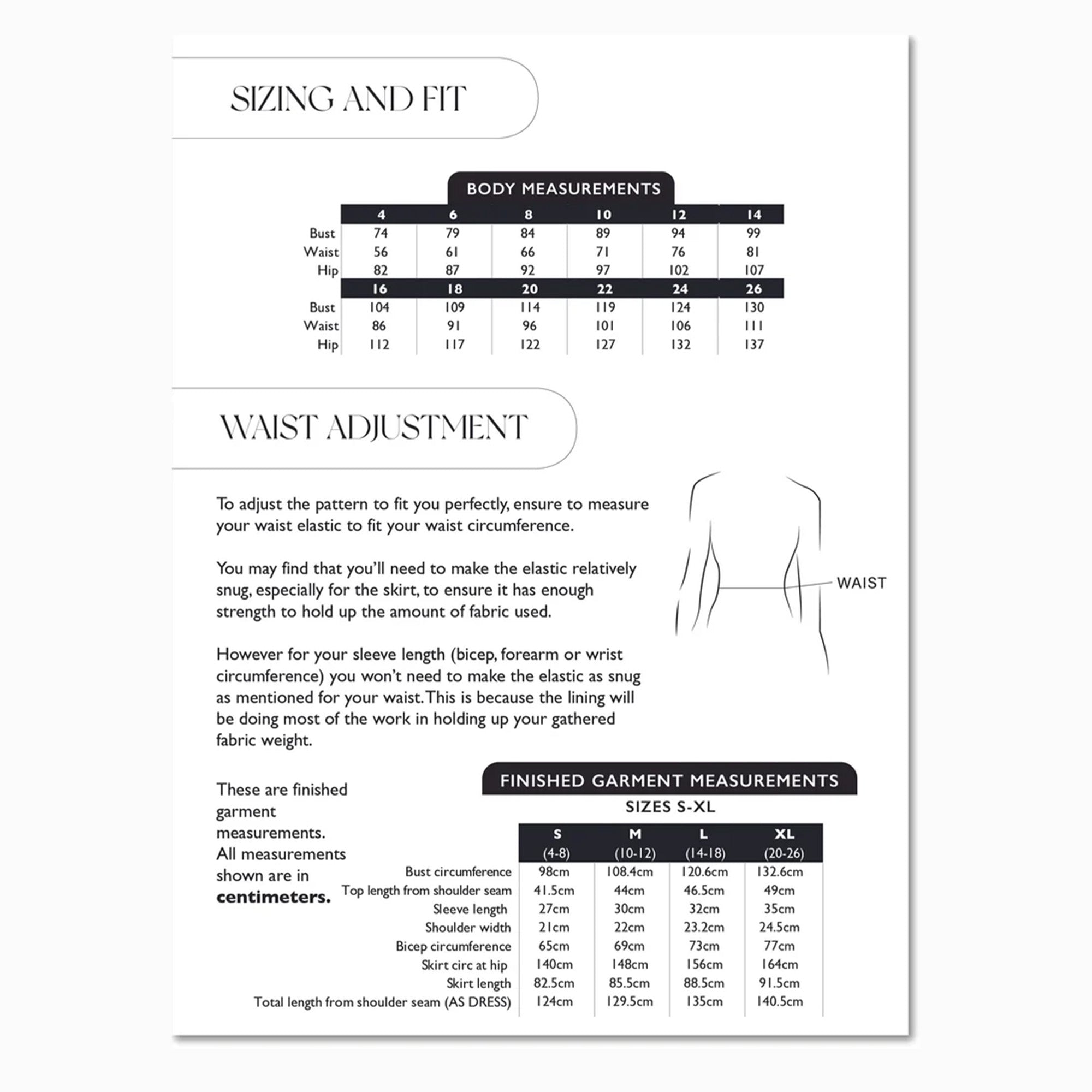 The Hera set includes a blouse with a tie neck and fully lined puff sleeves, and a gathered skirt with a curved yoke and pockets. Both have elasticised waistbands, and the top is reversible, so you can wear the keyhole in the front or back. The top and skirt can also be transformed into an all-in-one or semi-attached dress!