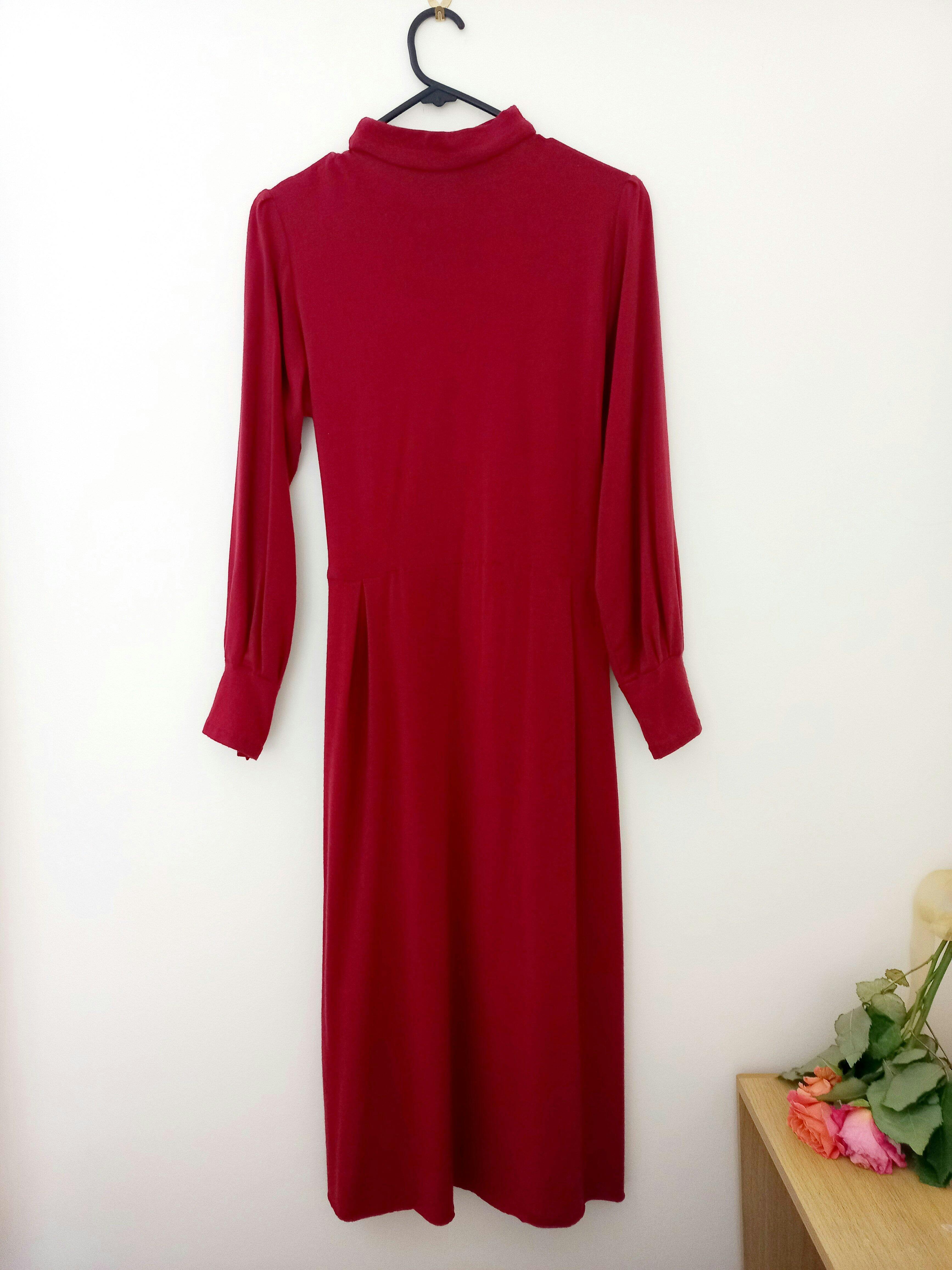 I love this fabric! Super soft, mid-weight merino with good stretch and drape. It feels so comfortable on and a great colour to work with for in-between seasons.